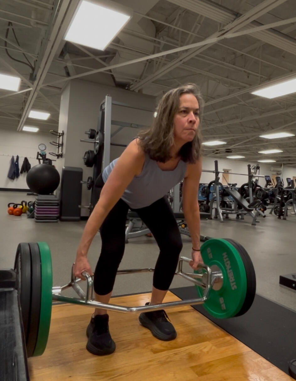 Here’s a picture of me doing hex bar deadlifts—a movement that has become a symbol of resilience. Strength training has given me confidence, energy, and